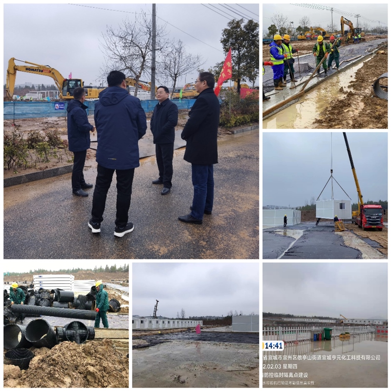 正月初三上午,區(qū)委副書記、區(qū)長俞志剛到宣州區(qū)疫情防控臨時(shí)隔離點(diǎn)工地現(xiàn)場督導(dǎo)項(xiàng)目建設(shè),副區(qū)長汪海洋陪同。俞志剛對(duì)項(xiàng)目建設(shè)速度給予充分肯定,向春節(jié)期間冒著雨雪天氣加班加點(diǎn)的項(xiàng)目建設(shè)者表示親切的慰問。上午,現(xiàn)場工人正在對(duì)路面沉降縫進(jìn)行切割、對(duì)積水較多區(qū)域進(jìn)行排水,為下一步吊裝工作做好準(zhǔn)備。截止目前,臨時(shí)隔離點(diǎn)北邊庫房、醫(yī)護(hù)辦公、醫(yī)護(hù)宿舍合計(jì)36套已吊裝結(jié)束,即將完成22套準(zhǔn)備區(qū)用房吊裝工作。